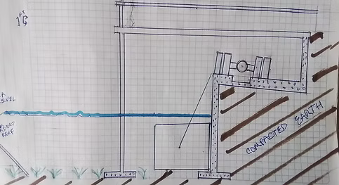 This drawing is a cross-section of the wave-making machine. “I want to show the small environmental footprint, simple design, and comparatively inexpensive construction,” said Neil.